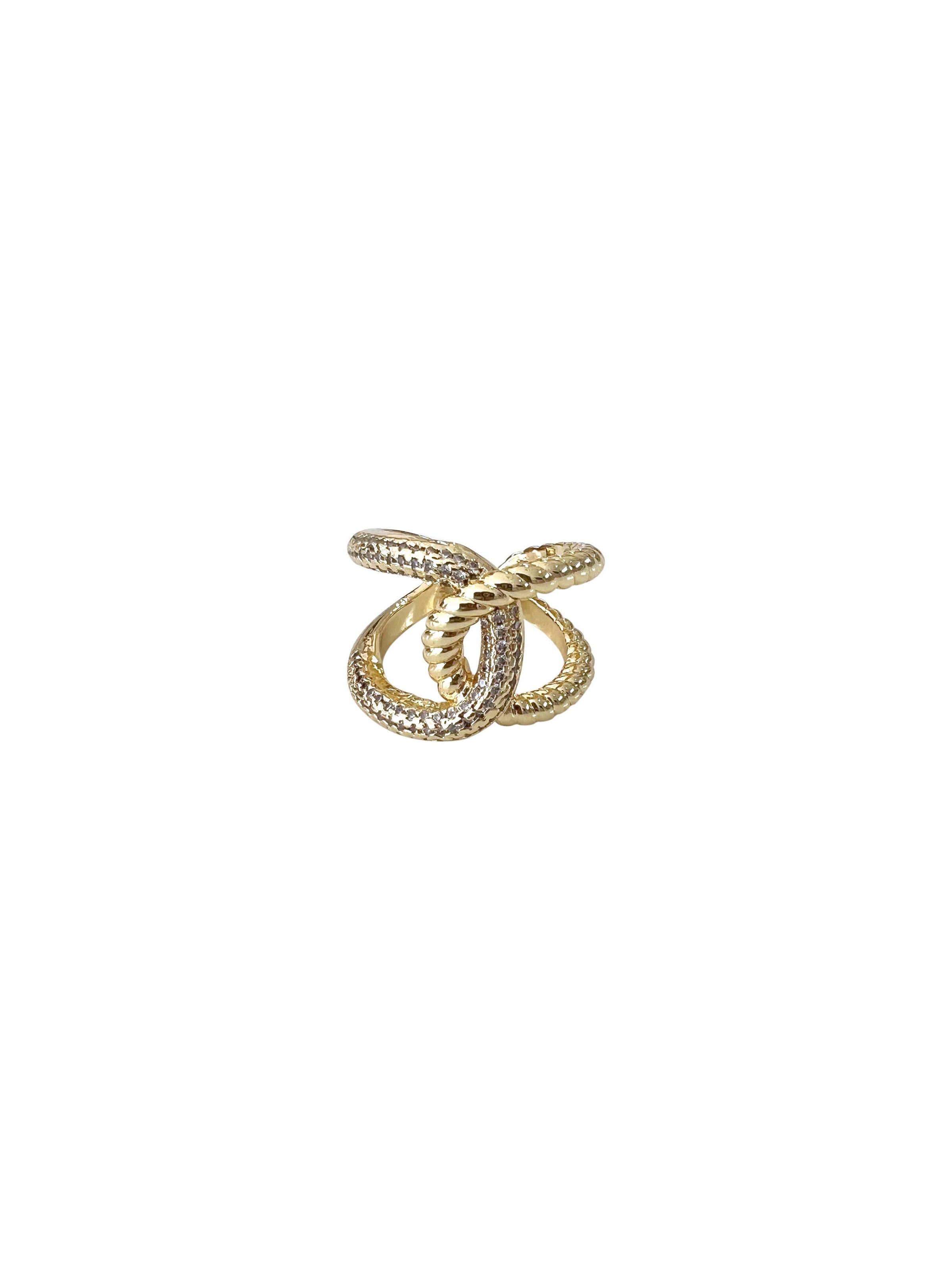 18k Gold or silver plated adjustable statement ring with CZ details.