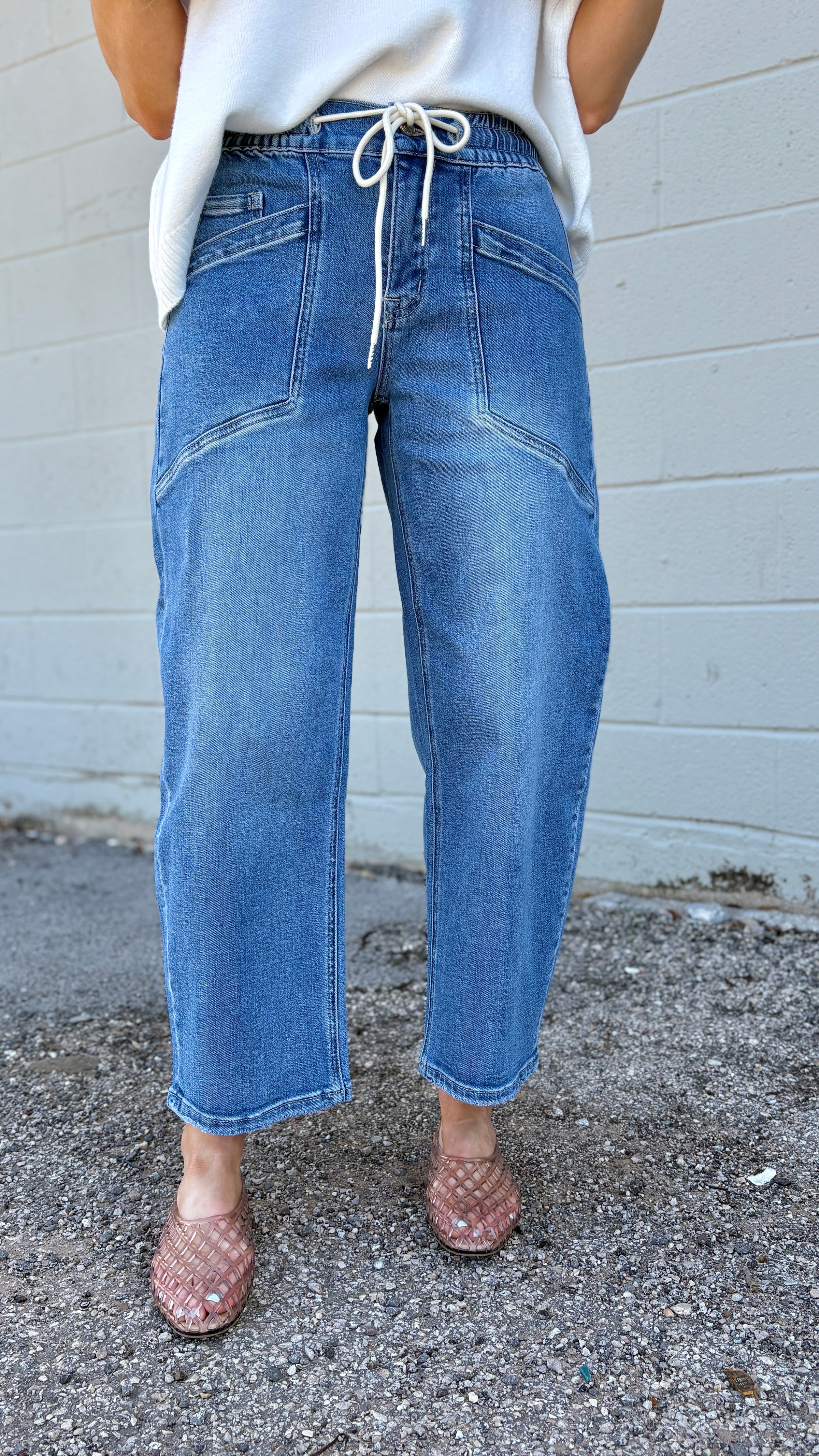 HIGH RISE CLEAN CUT RAW HEM CROP SLIM WIDE JEANS COMFORT STRETCH DENIM, HIGH RISE WAIST, CLEAN CUT RAW HEM, CROPPED LENGTH, SLIM WIDE JEANS F. RISE: 10" / INSEAM: 26 1/2" / LEG OPENING: 21" Taylor is wearing a 26