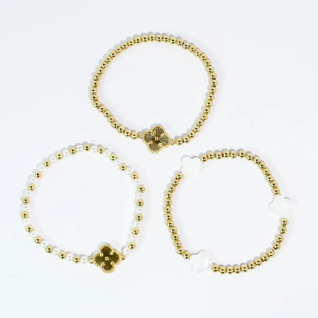 Fresh, lucky, and full of charm — the Clover Retake Bracelet Set features delicate gold beads, luminous pearls, and signature clover accents for a playful yet elegant vibe.