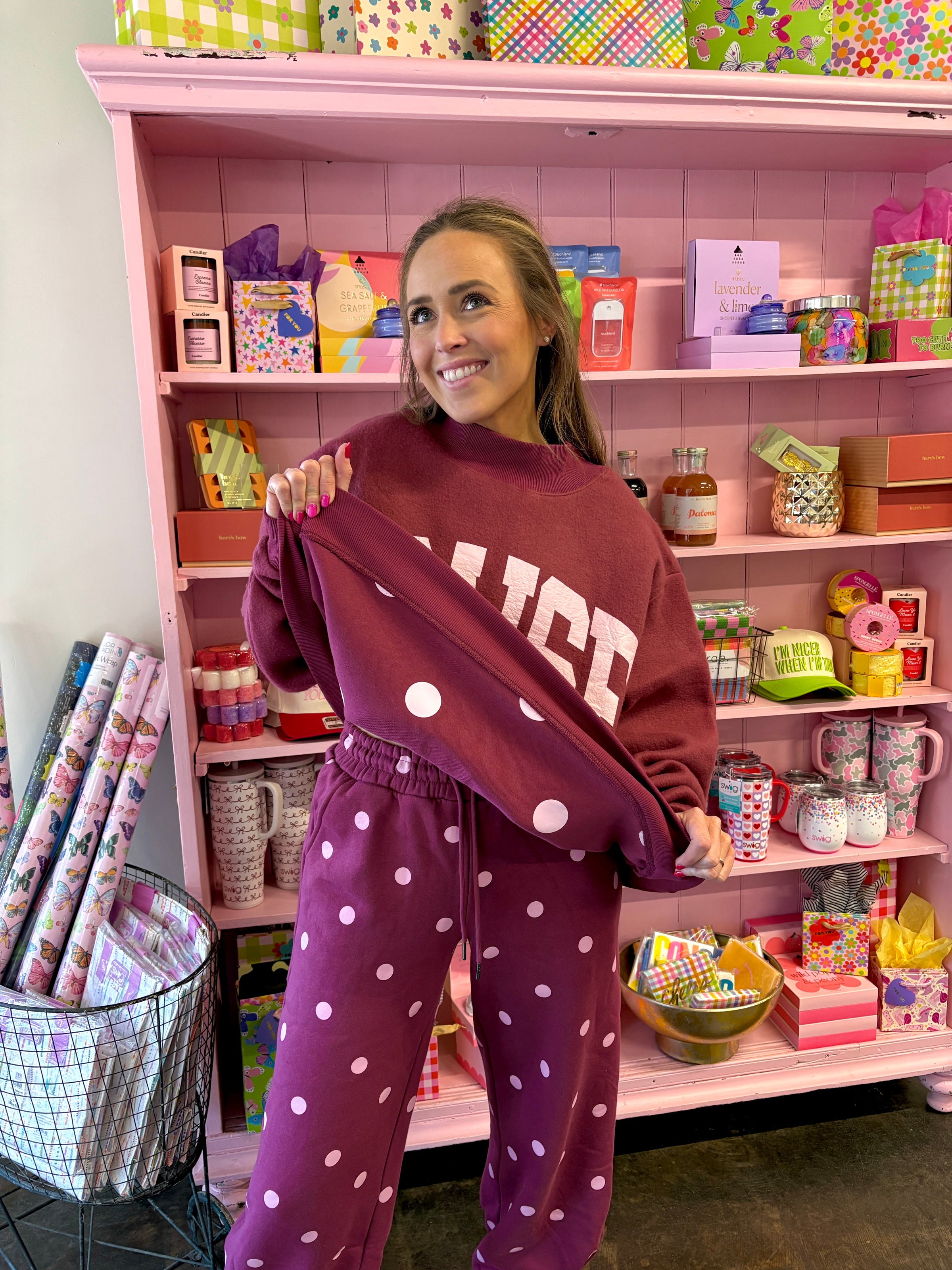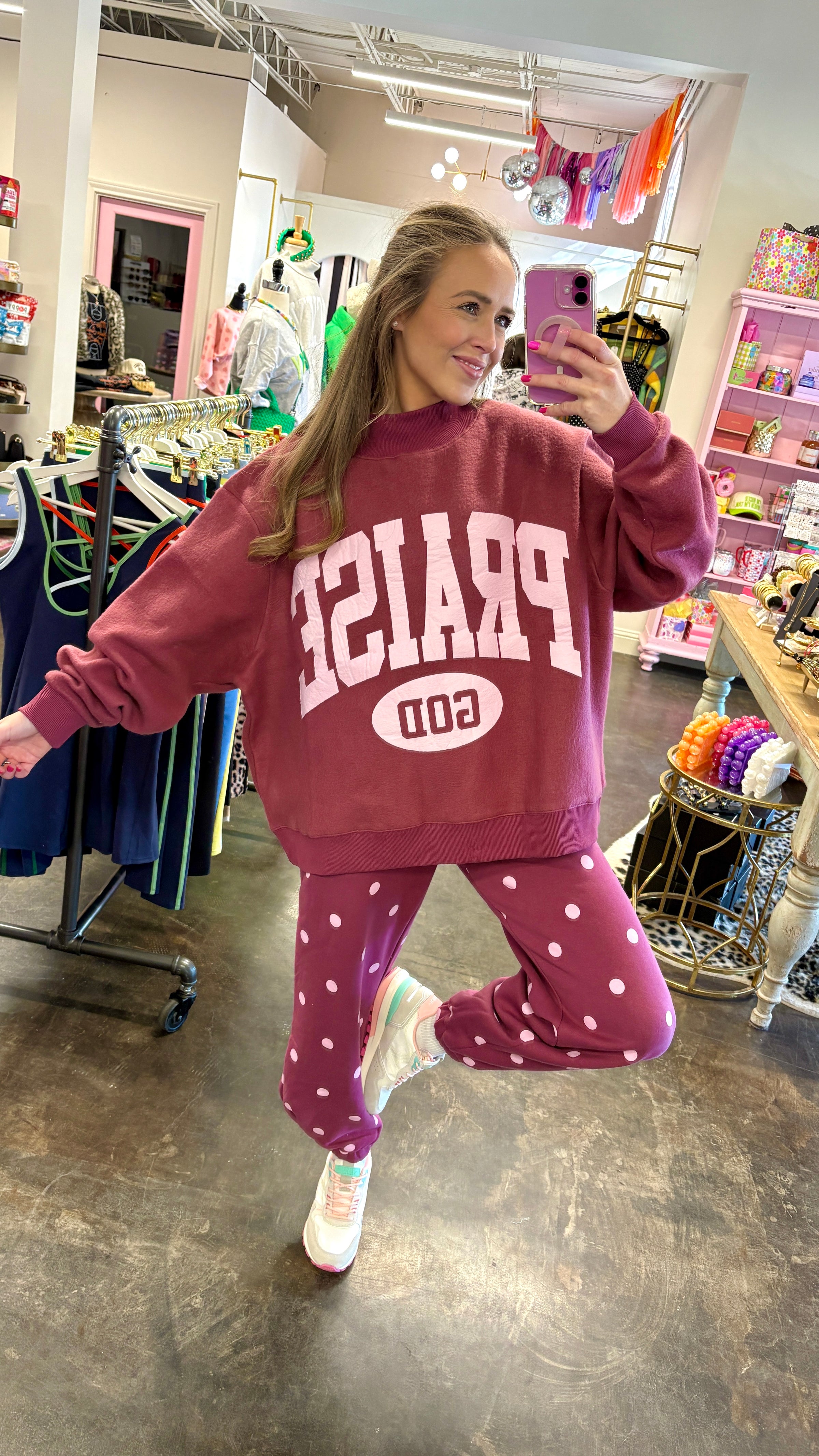 Poppy & Pine 2 Sided Mock Sweatshirt– Praise God reverses Polka Dot