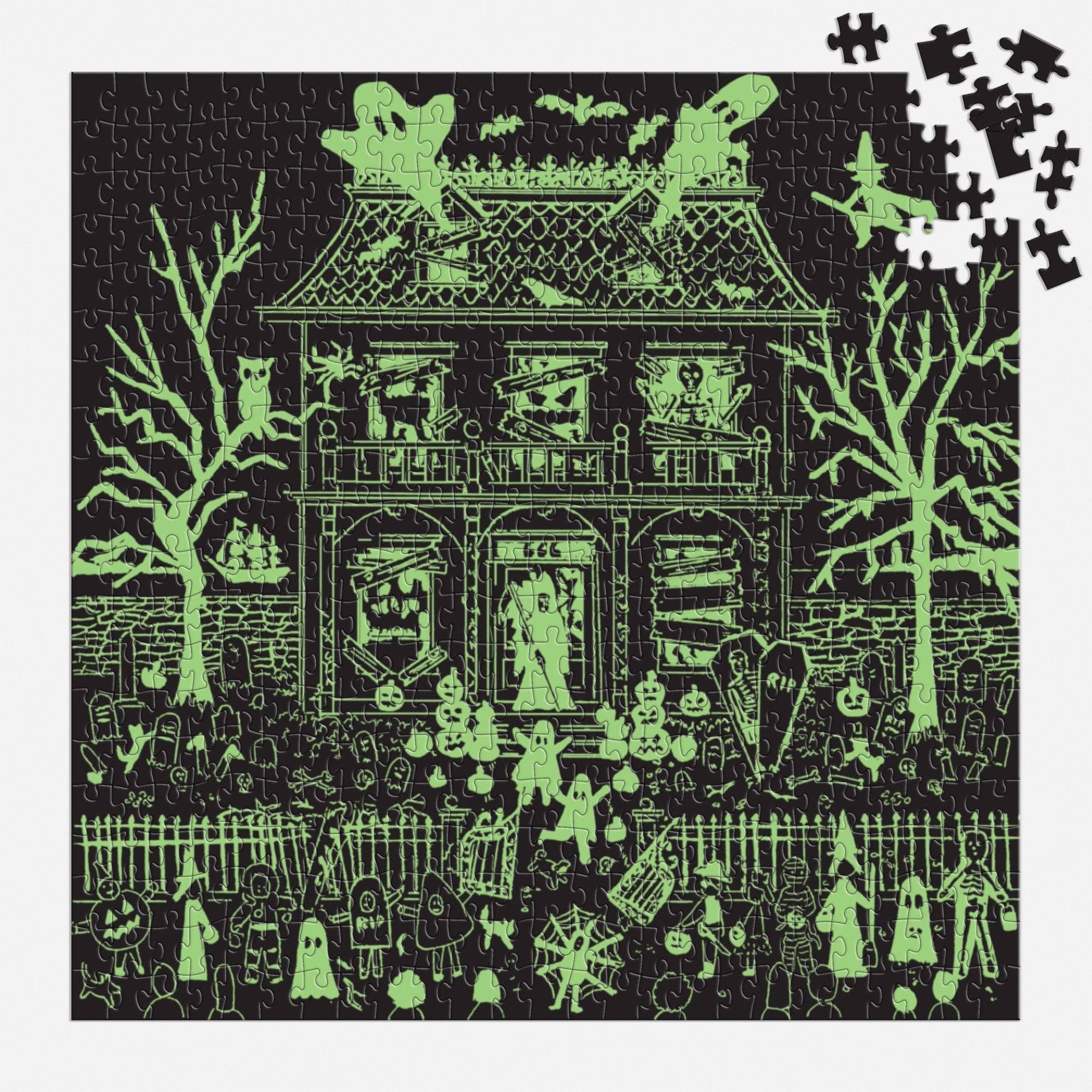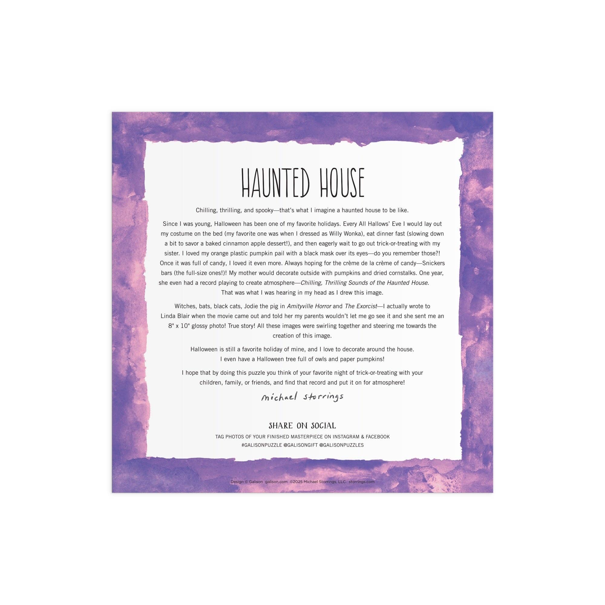 This captivating 500-piece puzzle showcases Michael Storrings' masterful illustration of a haunted house with exceptional detail and atmospheric composition. The specialized glow-in-the-dark feature reveals hidden elements when lights dim, adding an innovative dimension to the puzzling experience. Precision-cut pieces ensure proper fit while providing a moderate challenge suitable for intermediate puzzlers. The dual visual experience—standard and luminescent—offers compelling replay value, making this a distinctive addition to any puzzle collection.