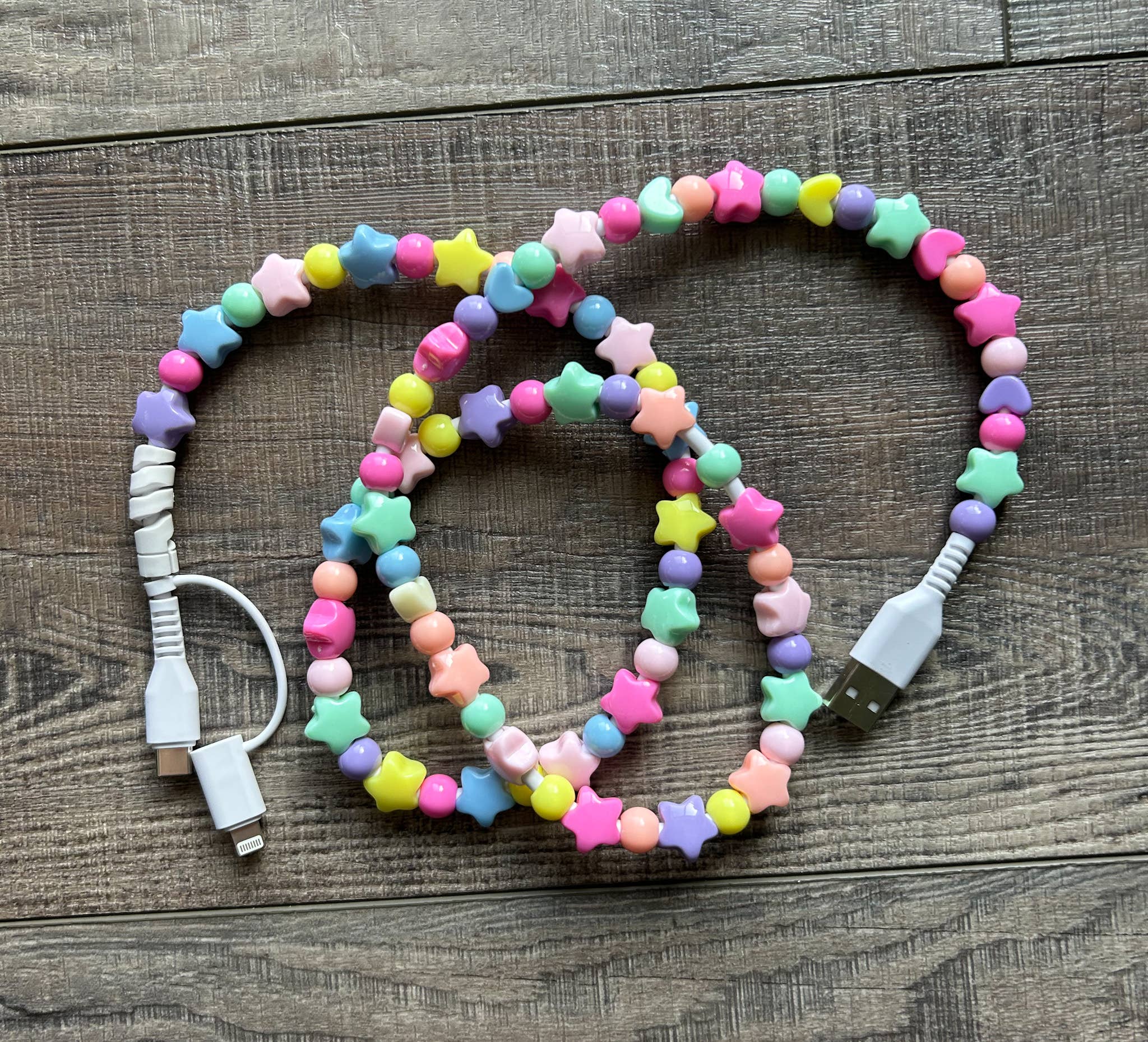 Stars Beaded Phone Charger with Lightning & USB-C Cable